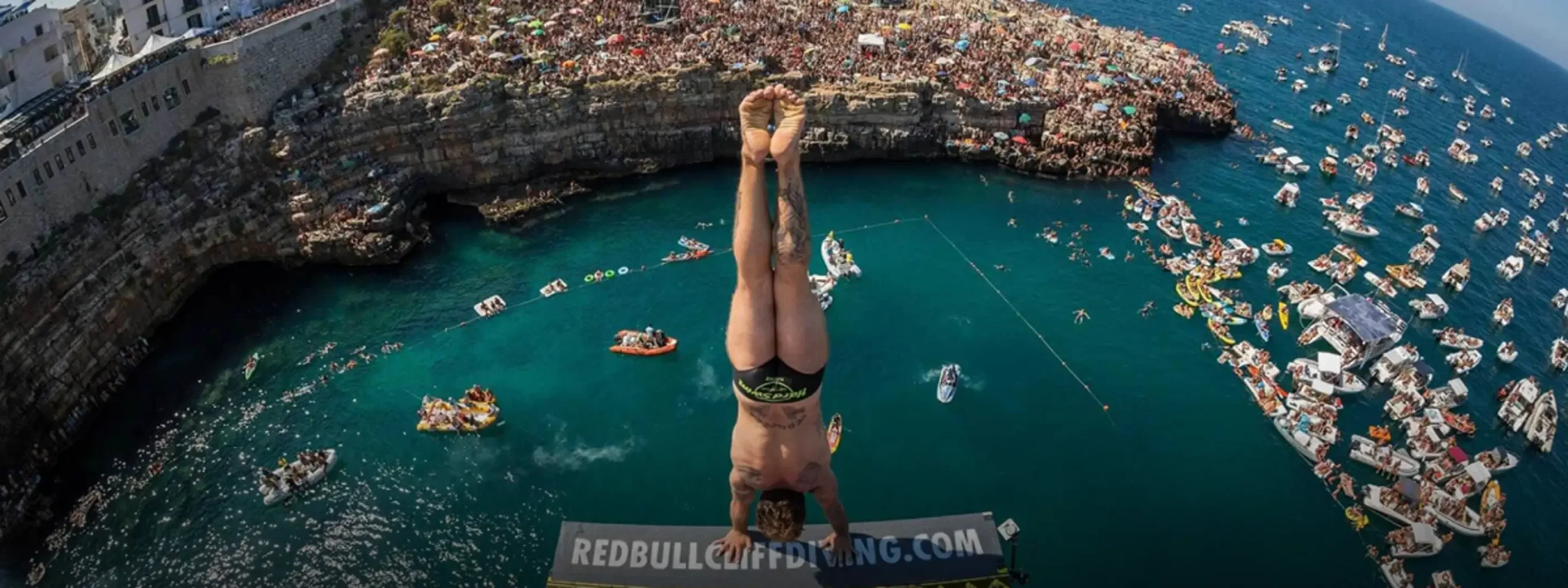 Polignano è famosa anche perché ospita una tappa del Red Bull Cliff Diving World Series, una competizione di tuffi internazionale. La gara, tra le più estreme ed emozionanti al mondo, rende il comune pugliese la casa europea di questo sport.
